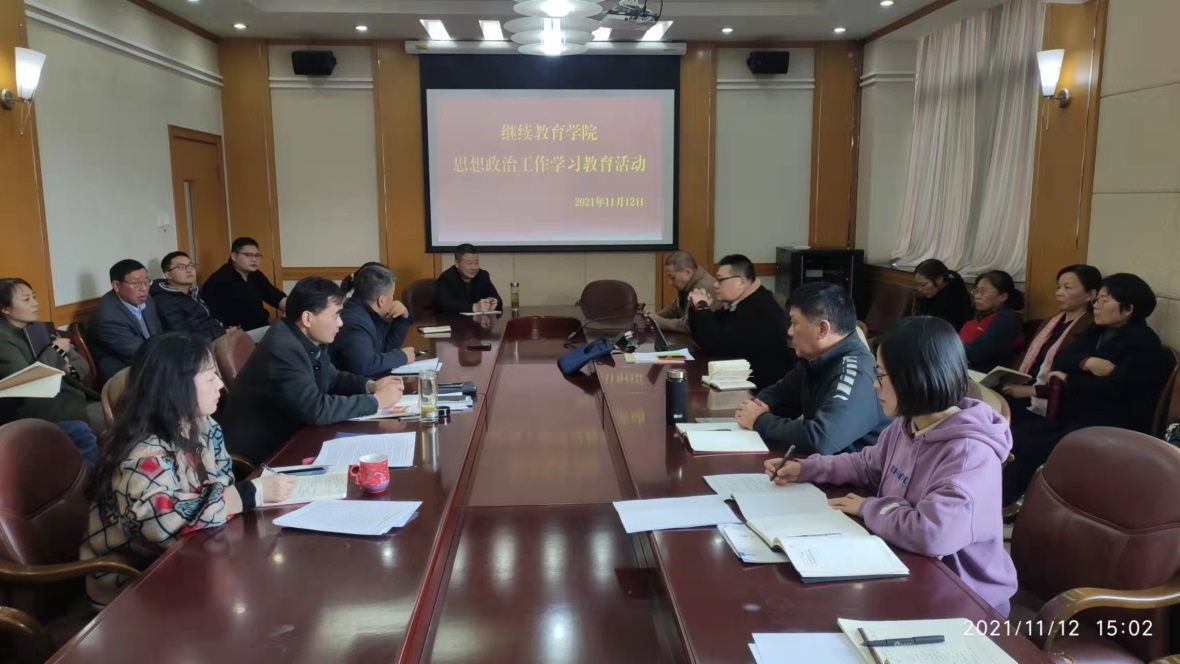 11月12日下午,在北校区图书馆301会议室,PlayAce游戏平台组织教职工开展政治教育学习活动,集中学习了中共中央、国务院《关于新时代加强和改进思想政治工作的意见》、《习近平关于安全生产的重要论述》以及《习近平:总结党的历史经验,加强党的政治建设》等文件精神。全体教职工参加。