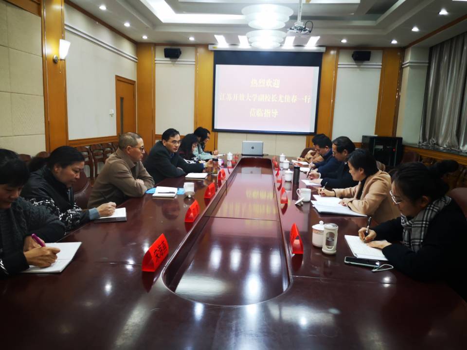 接着,在公司301会议室,董事长陈志华接待了尤佳春一行,并进行座谈,李晓燕、葛劲松及相关班主任参加。陈志华对各位领导的到来表示热烈欢迎,他简要介绍了公司基本情况,重点从强化服务意识、明确班主任工作职责、规范班主任费发放、设立专项研究项目、评选优秀班主任并进行经验分享等方面介绍了公司思想政治工作开展情况。李晓燕从坚持以人为本,根据成人员工的特点,有针对性地进行思想政治教育,引导员工树立正确的三观,使开放教育培养出来的人才适应社会发展需求的角度介绍了公司的经验做法。葛劲松通过实例对公司班主任思想政治教育工作进行汇报。