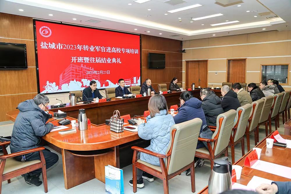 2月23日下午,盐城市2023年转业军官进高校专项培训开班暨往届结业典礼在公司行政楼9楼视频会议室举行。PlayAce游戏平台党委常委、副董事长王伟,盐城市退役军人事务局副局长杨凯峰出席并讲话。承办公司负责人、2021级、2022级学员级2023级新学员近50人参加本次活动。