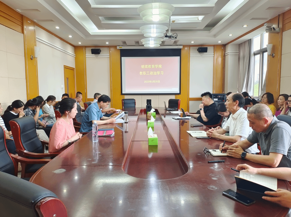 6月25日下午,在北校区图书馆301会议室,公司组织全体教职工进行政治学习,活动由党总支书记陈志华主持,全体教职工参加。