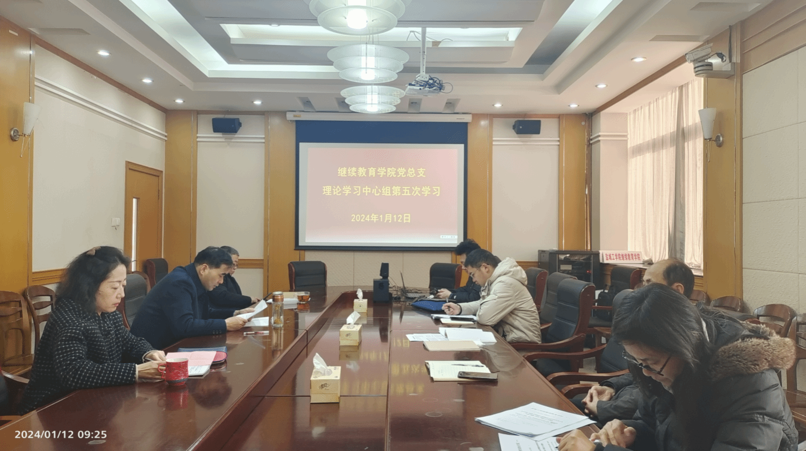 2024年1月12日上午,在北校区图书馆301会议室,公司中心组开展秋学期第五次集中学习。经理陈志华主持,中心组成员参加。