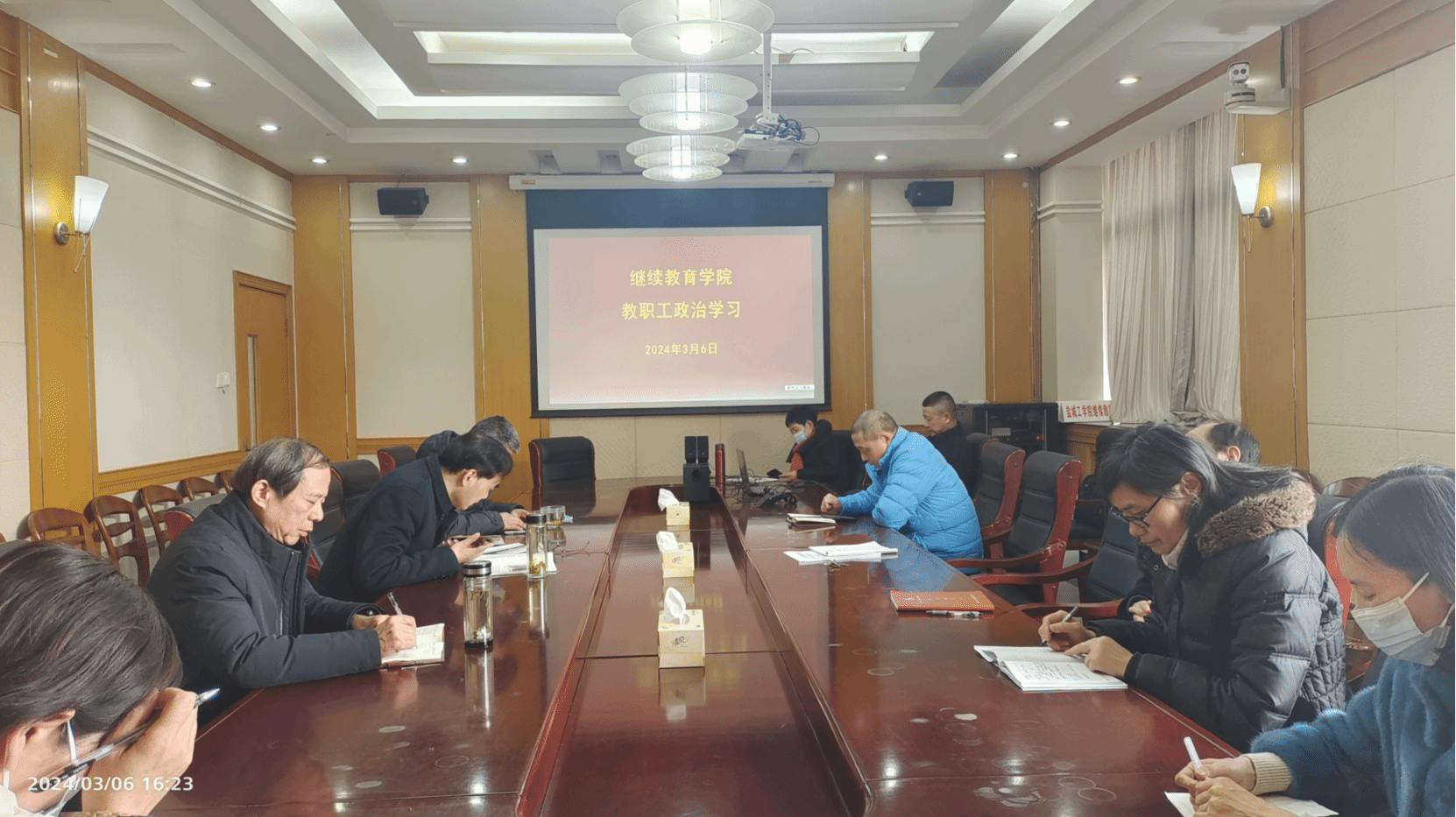 3月6日下午,在北校区图书馆301会议室,公司开展春学期第一次教职工政治学习活动,党总支书记、经理陈志华主持并领学,全体在编职工参加学习。