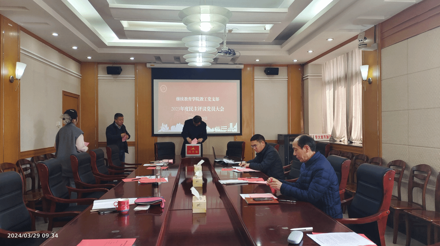 会上,党总支书记、经理陈志华领学了《中国共产党支部工作条例(试行)》。朱荪珺代表支部委员会汇报公司教工支部2023年开展的工作,接受党员评议。随后,对公司所有党员按照“优秀”、“合格”、“基本合格”、“不合格”4个等次,进行民主测评。