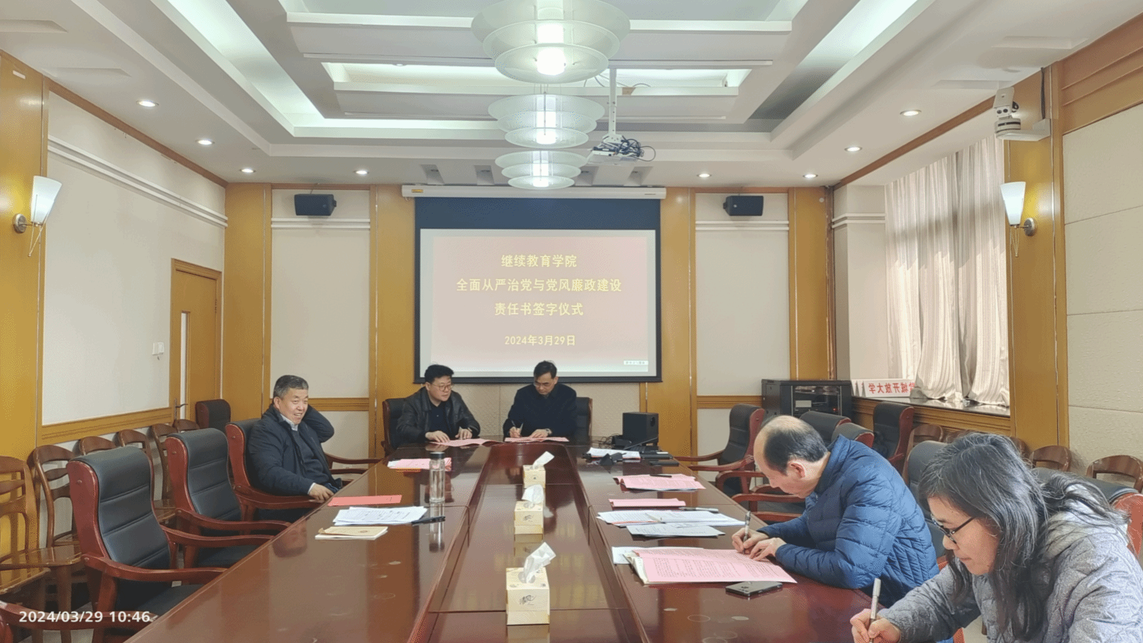 3月29日上午,在北校区图书馆301会议室,公司举行全面从严治党与党风廉政建设责任书签约仪式。副经理夏金海主持,公司全体中心组成员参加。