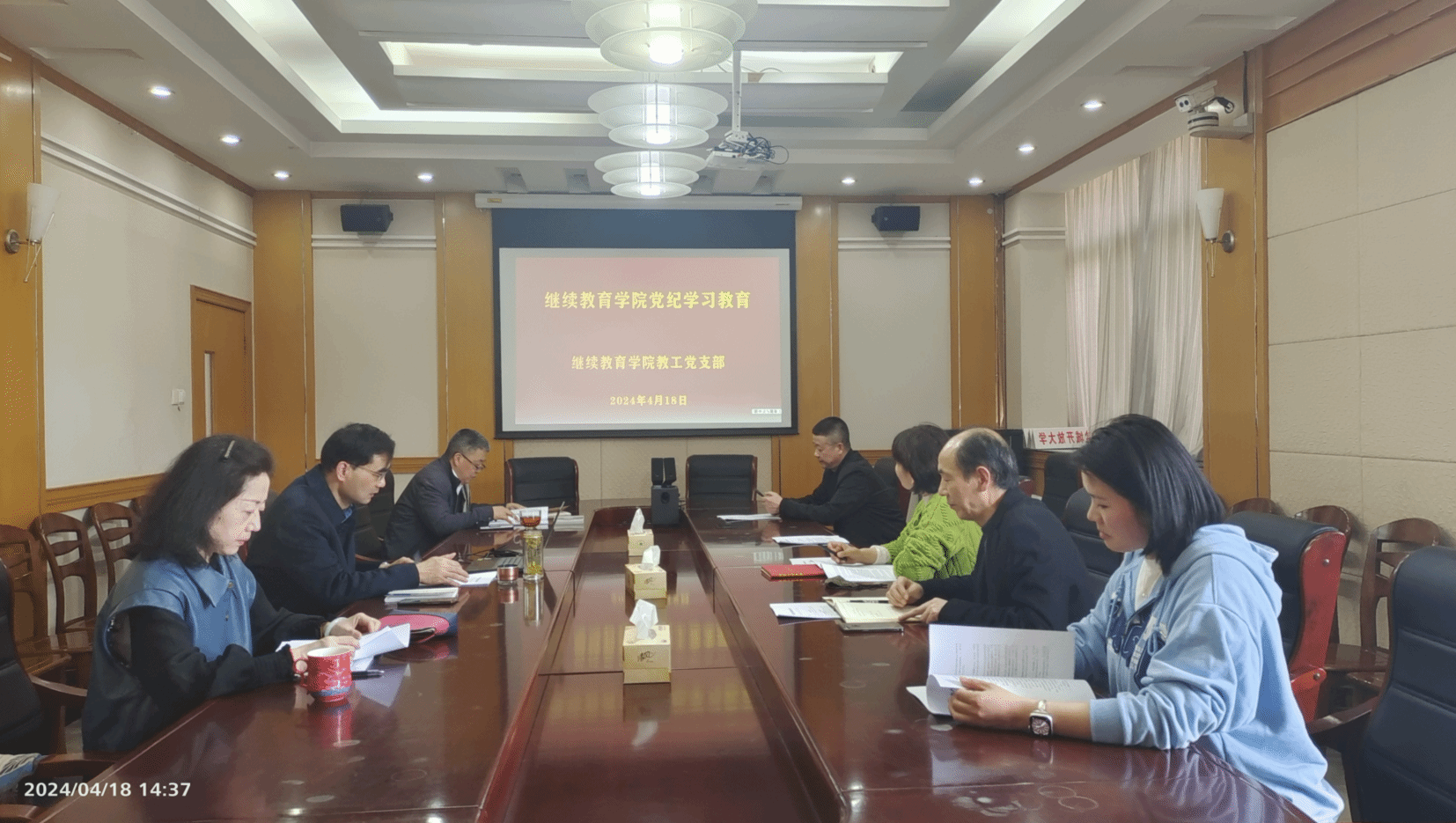 4月18日下午,在北校区图书馆301会议室,公司教工党支部组织开展党纪教育学习,全体党员参加。