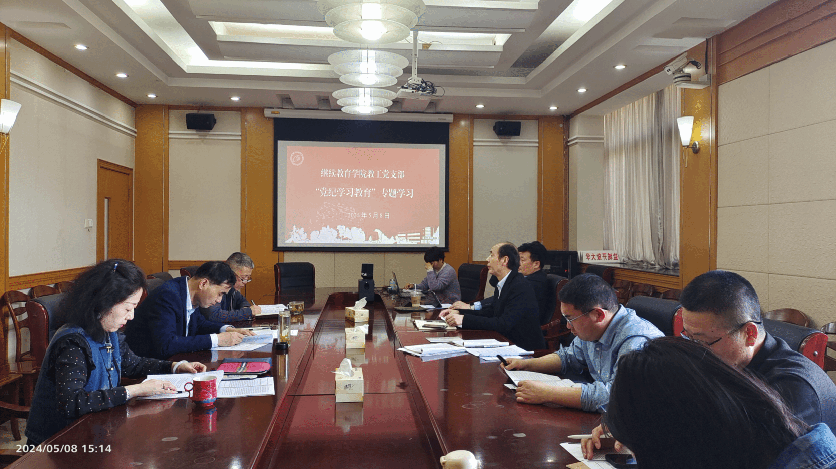 5月8日下午,在北校区图书馆301会议室,公司教工支部开展党纪学习教育专题学习,全体党员参加。