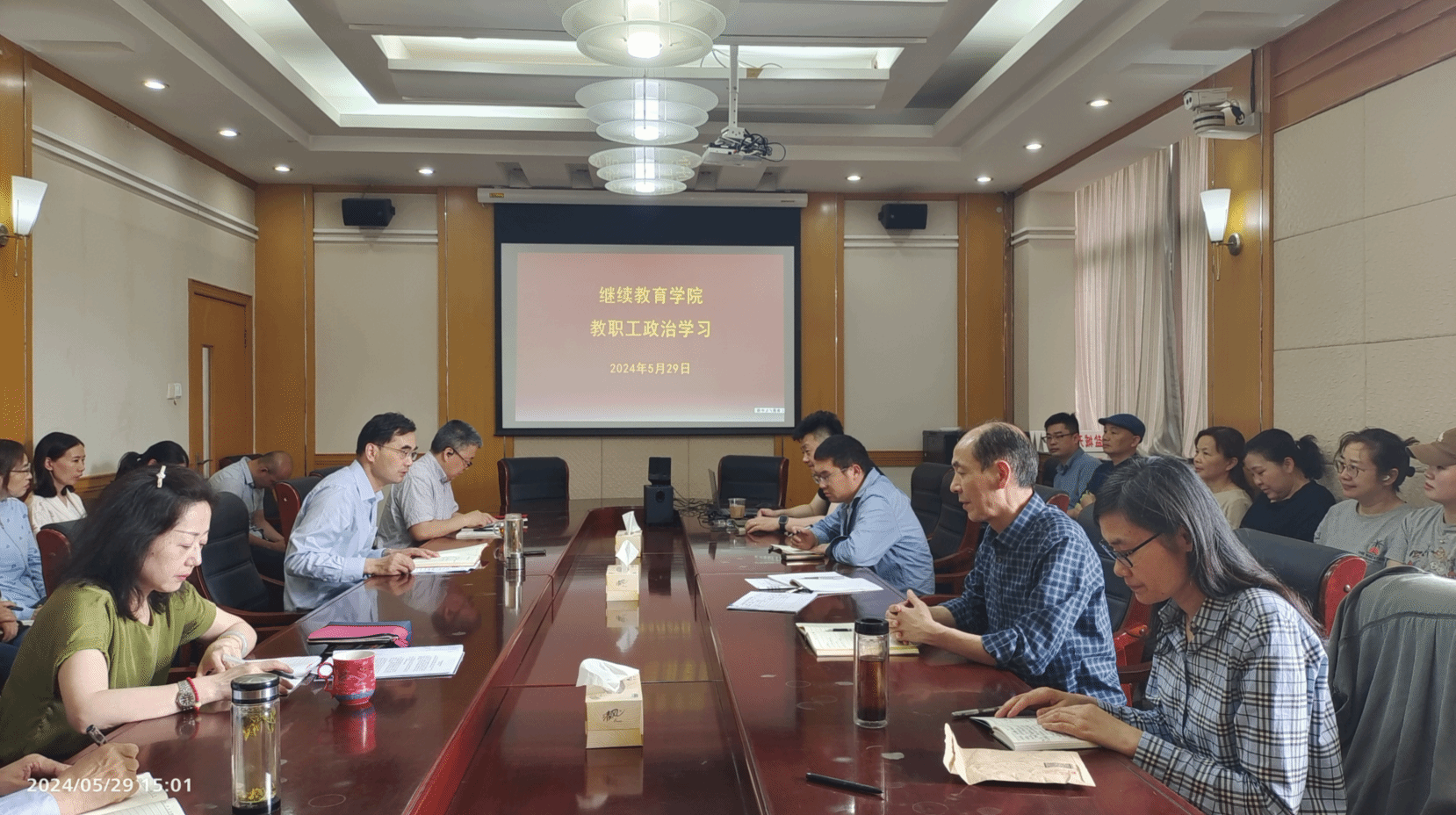 5月29日下午,在北校区图书馆301会议室,公司开展春学期第五次教职工政治学习活动,党总支书记、经理陈志华主持,全体职工参加。