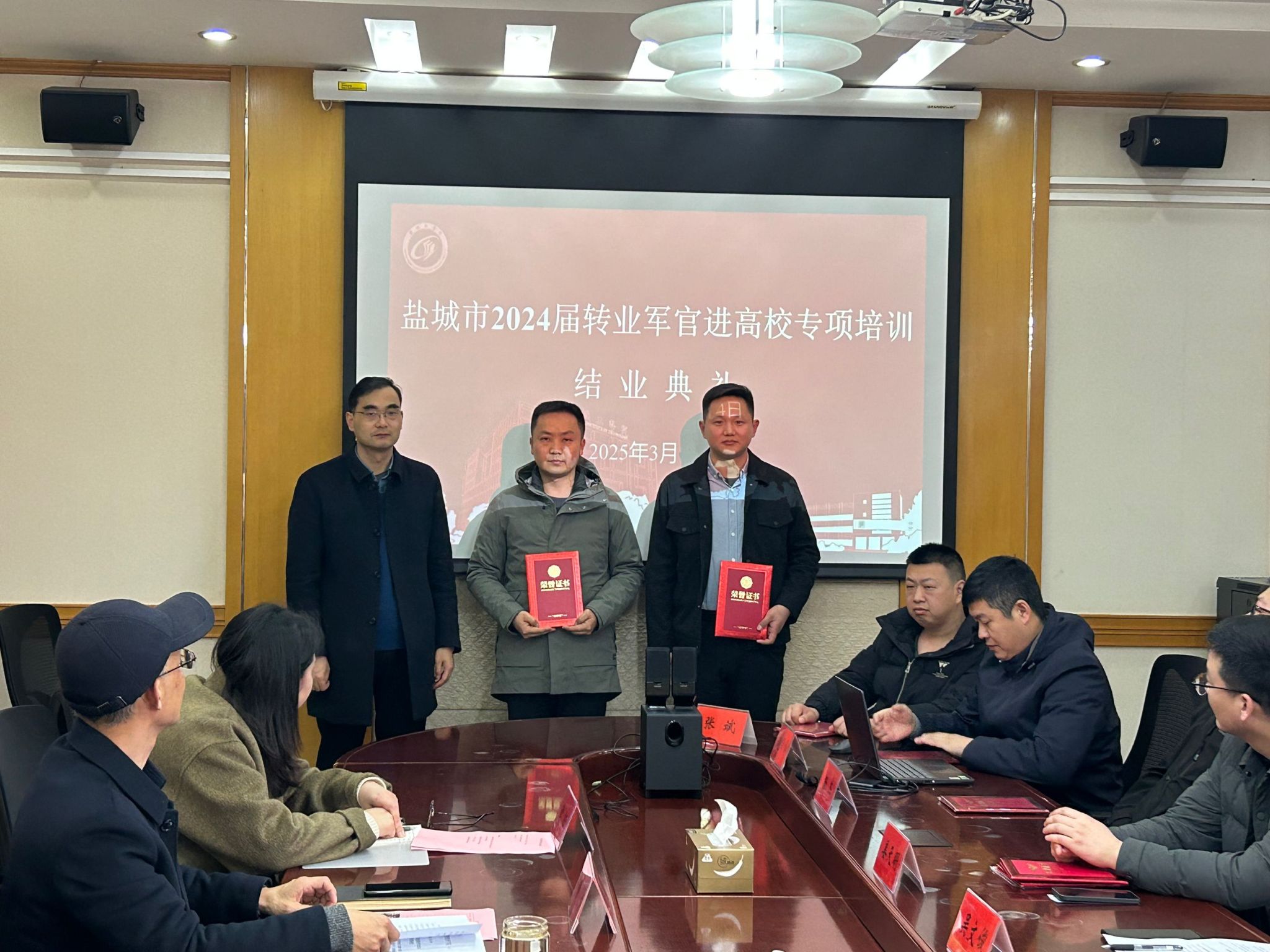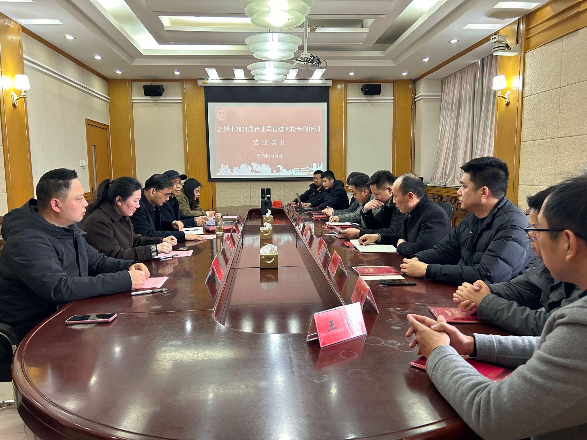 3月14日下午,盐城市2024届转业军官进高校专项培训结业典礼在建军东路校区图书馆301会议室举行。PlayAce游戏平台经理陈志华出席典礼并讲话,PlayAce游戏平台培训部负责人,承办公司教师代表,2024届结业学员参加。PlayAce游戏平台党总支副书记、副经理杨军主持结业典礼。
