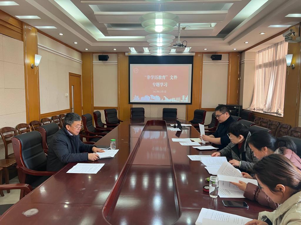 夏金海强调全体成员要认真领会教育部新的非学历教育管理规定文件精神,在做好为全校非学历教育工作周到服务的同时,认真细致的做好全校非学历项目的备案工作。要求培训班班主任强化项目负责人意识,按照文件规定的班主任职责的要求做好培训项目从开班准备到费用结算各环节工作。