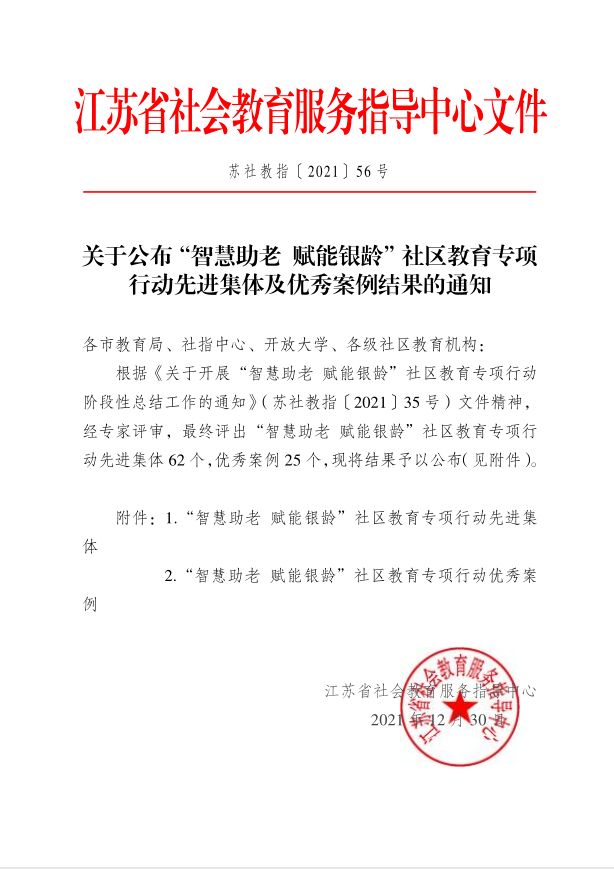 关于公布“智慧助老 赋能银龄”社区教育专项行动先进集体及优秀案例结果的通知