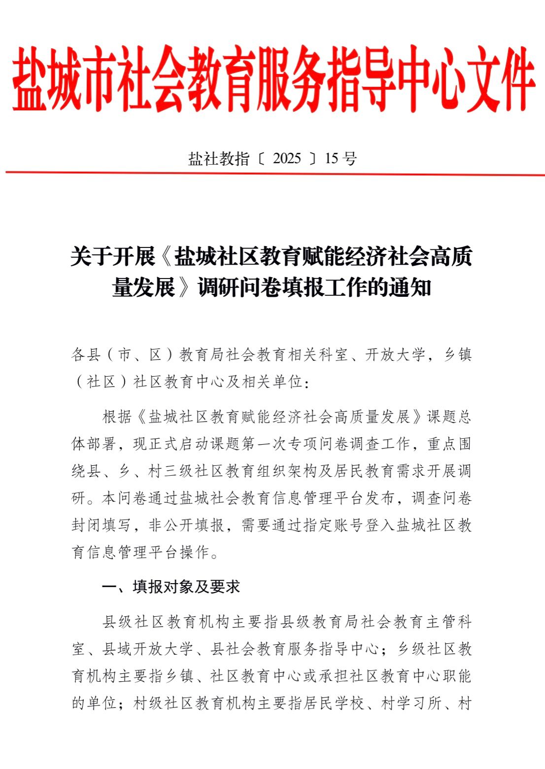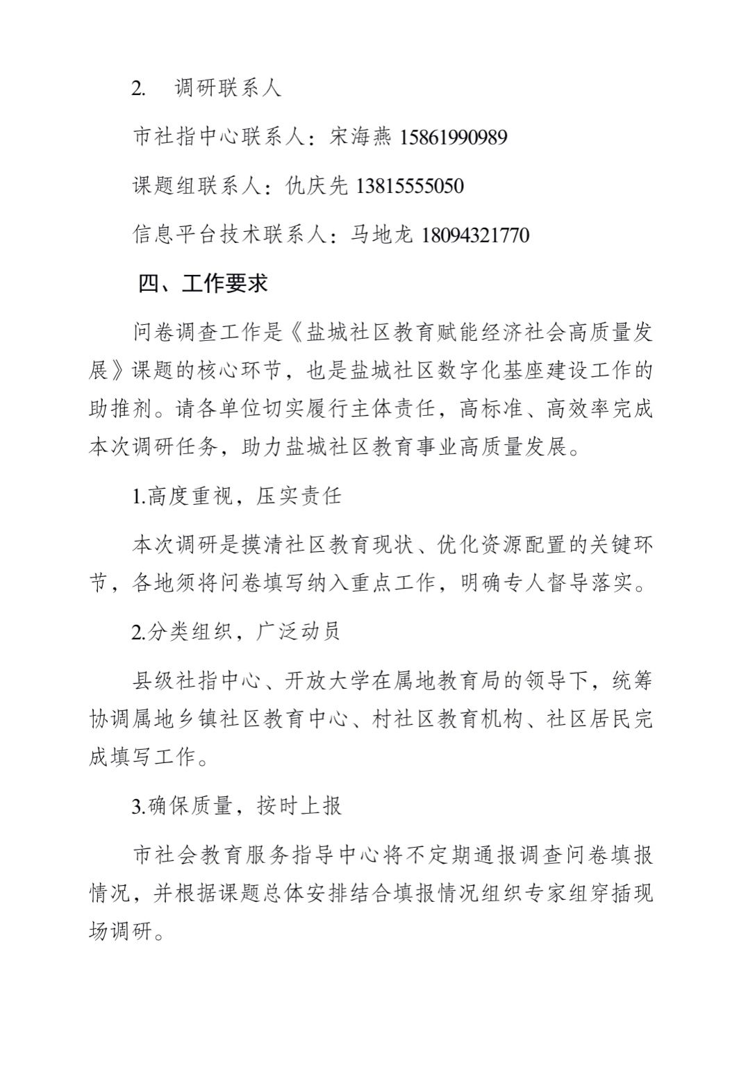 关于开展《盐城社区教育赋能经济社会高质 量发展》调研问卷填报工作的通知