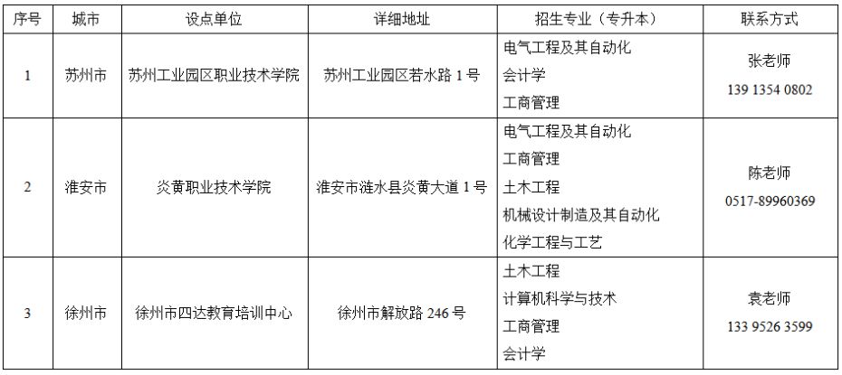 十二、校外教学点招生专业及联系方式