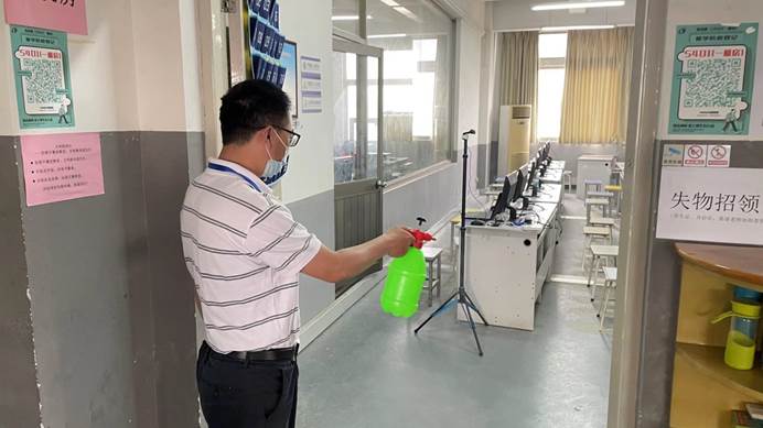 本次考试在疫情防控的要求下,设置体温监测仪,要求佩戴口罩,并进行场所码签到、健康码和行程码查验;另外安排大巴车闭环运送南校区的考生,做到全过程无外界接触。