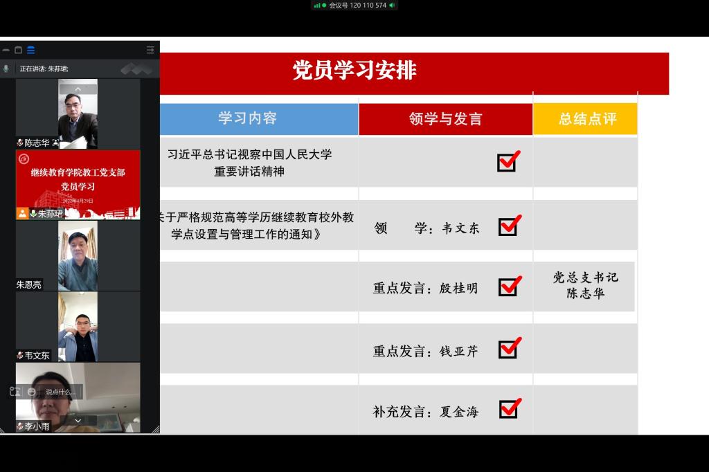 4月29日上午,公司教工支部通过云端开展全体党员政治学习。支部书记朱荪珺主持。