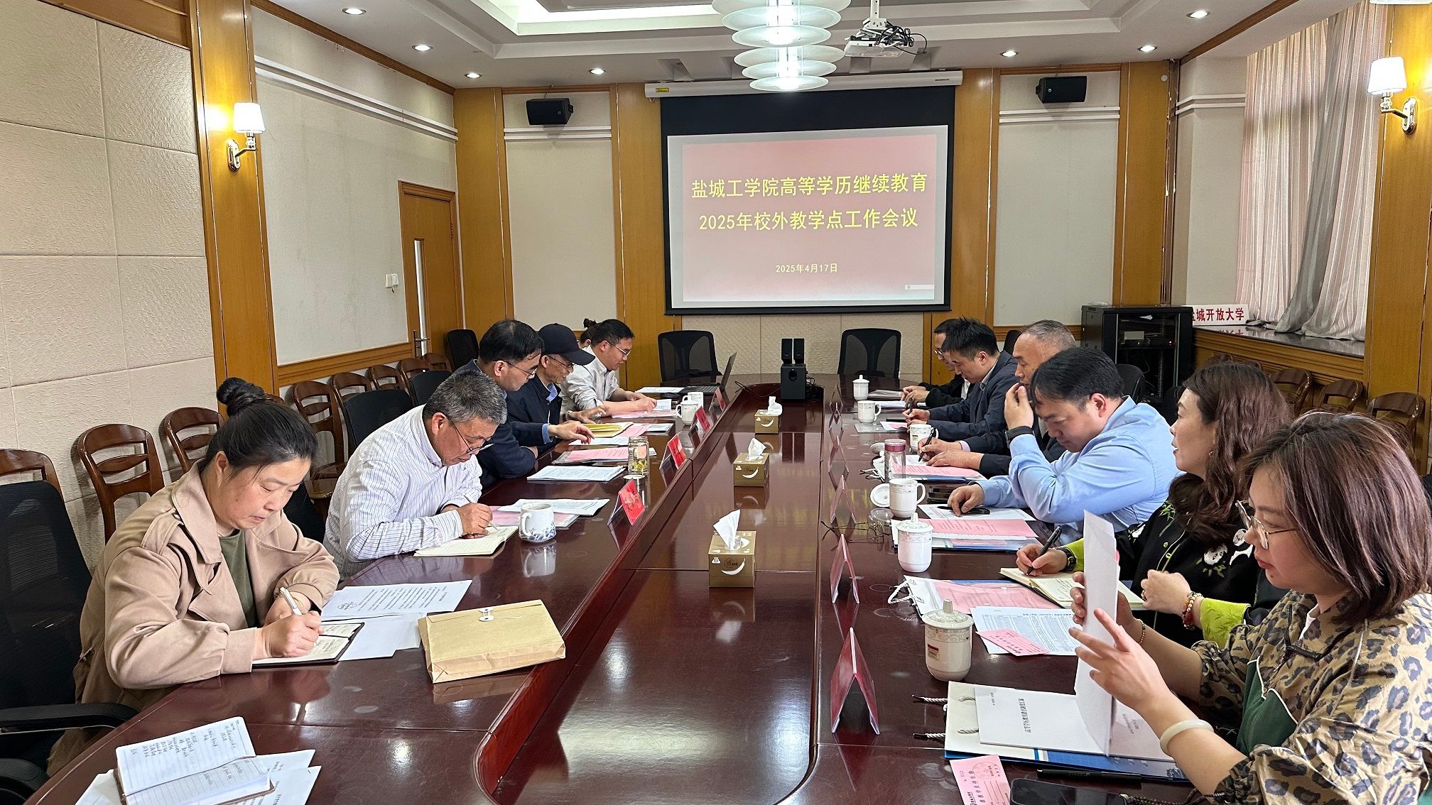 2025 年 4 月 17 日下午,公司在北校区图书馆 301 会议室召开高等学历继续教育校外教学点工作会议。会议由PlayAce游戏平台党总支副书记、副经理杨军主持,经理陈志华、教学督导负责人夏金海、校外教学点负责人及相关工作人员以及学历教育部全体成员参会。